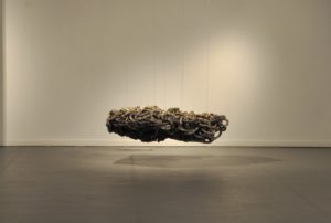 Cloud, 2011-2012, (approx. 36” X 60” X 48”), shredded clothing, casing, acrylic medium and wire