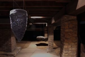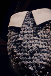 Vessel Vessel: 2010, 12” X 7” X 7”, cotton shirt The soft sculpture is made from a cotton shirt that was cut into a continuous strip from the bottom edge up to the collar, and then crocheted into its present form – a kind of vessel for the absent body.